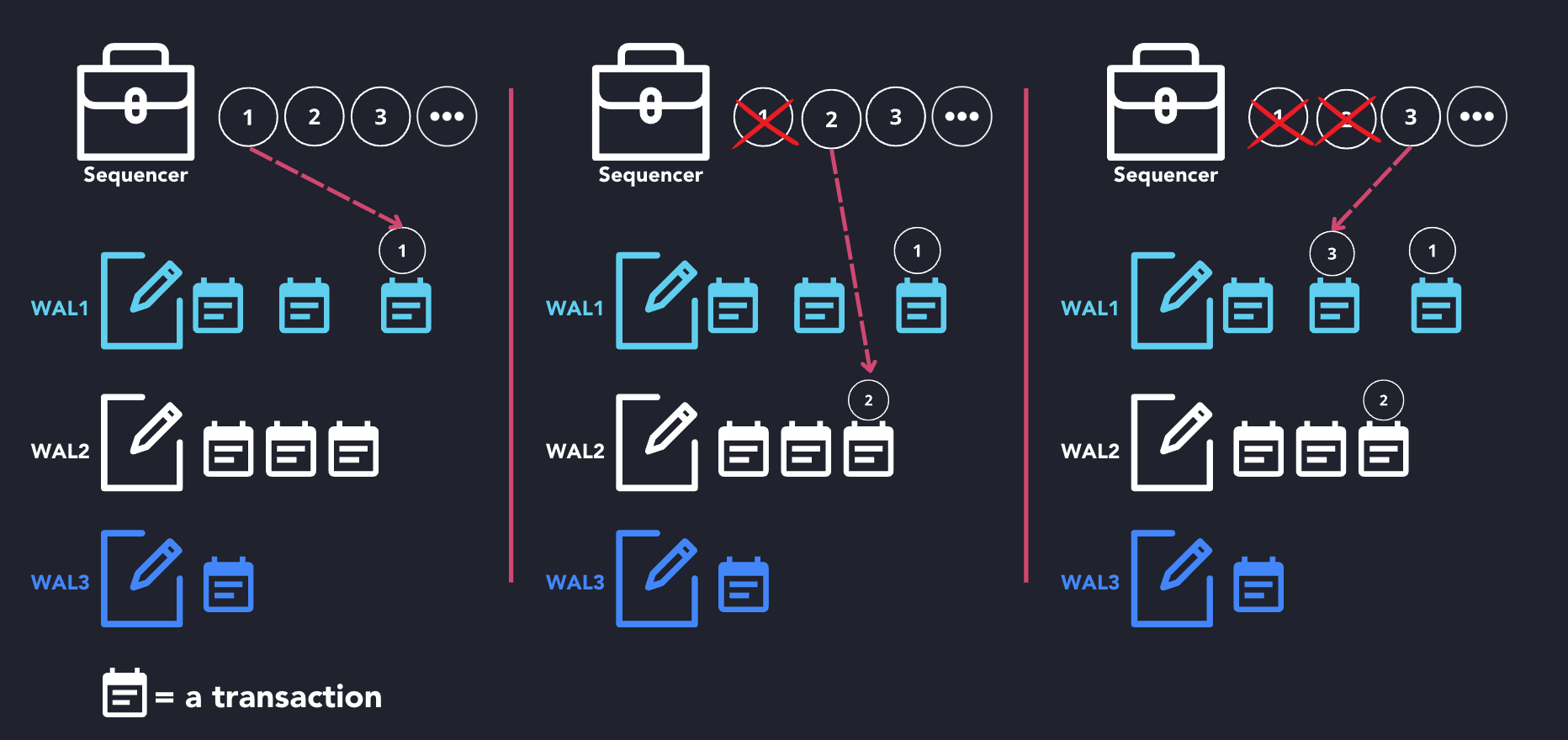 WALsensure that the table is not locked by one interface only.Sequencer: centrally manages transactions, providing a single source of truth. The sequencer generates unique